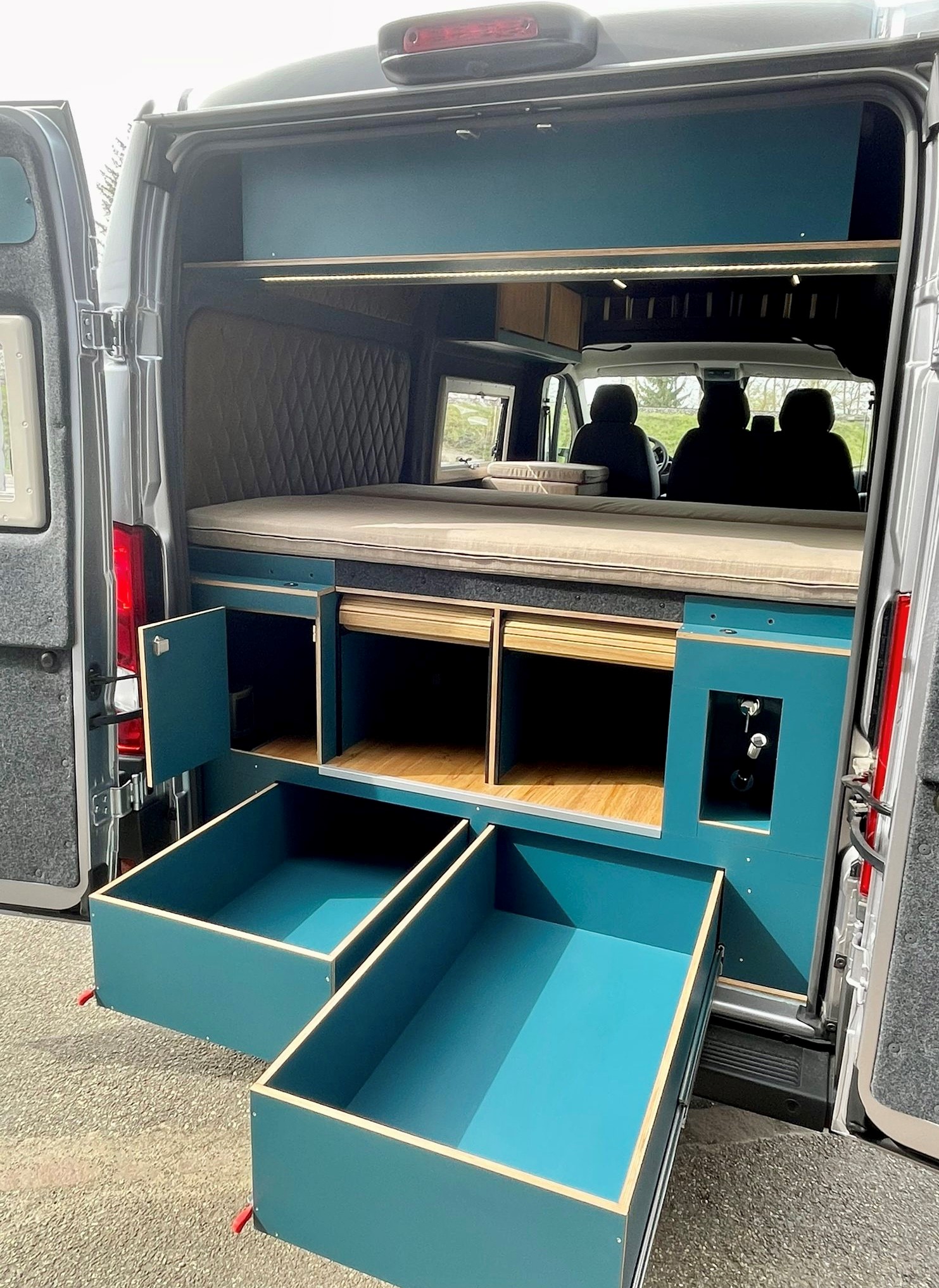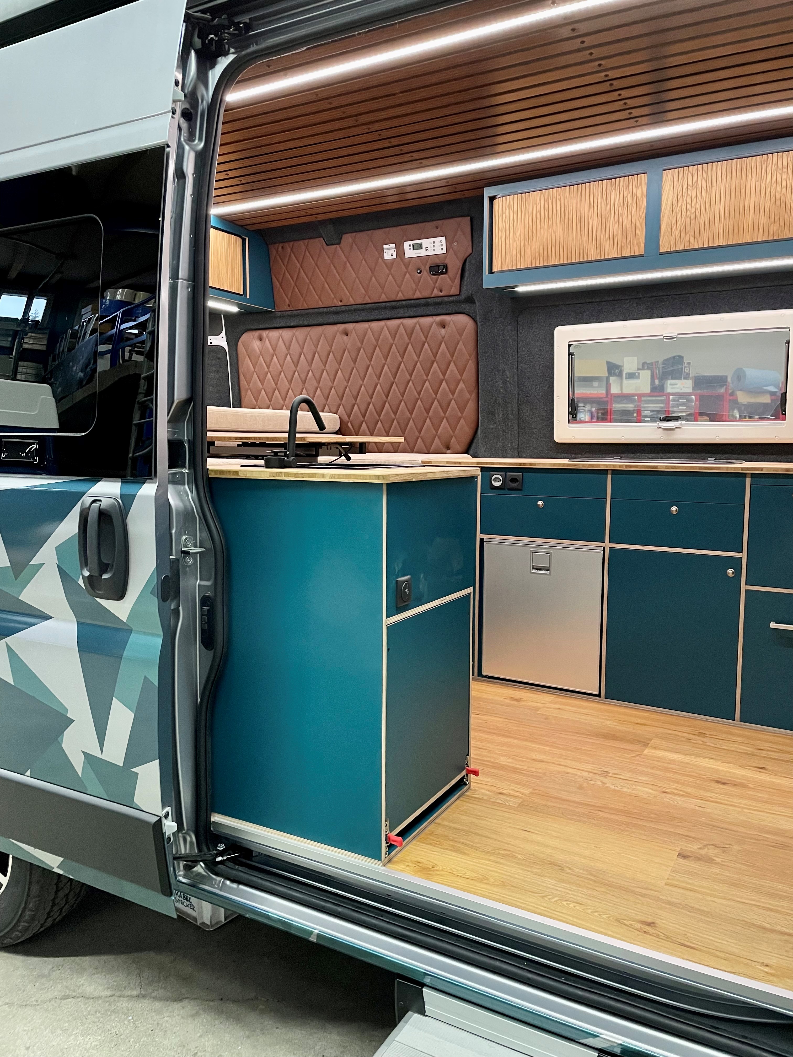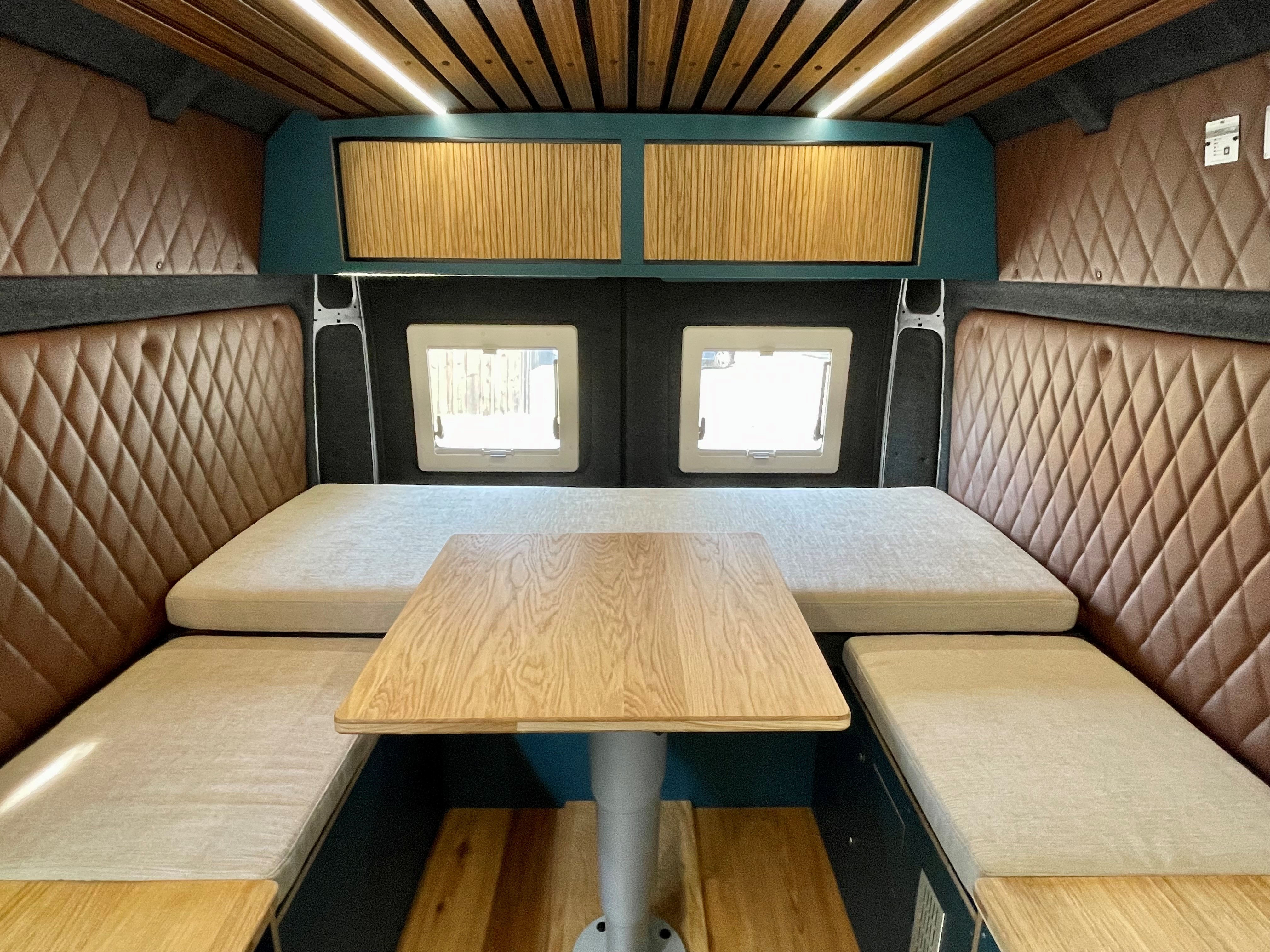 Ein Campervan muss nicht aussehen wie ein Wohnmobil von der Stange. Wieso nicht ein Fahrzeug dieser Grösse betreten und über einen offenen, grosszügigen und zugleich luxuriösen Raum staunen?