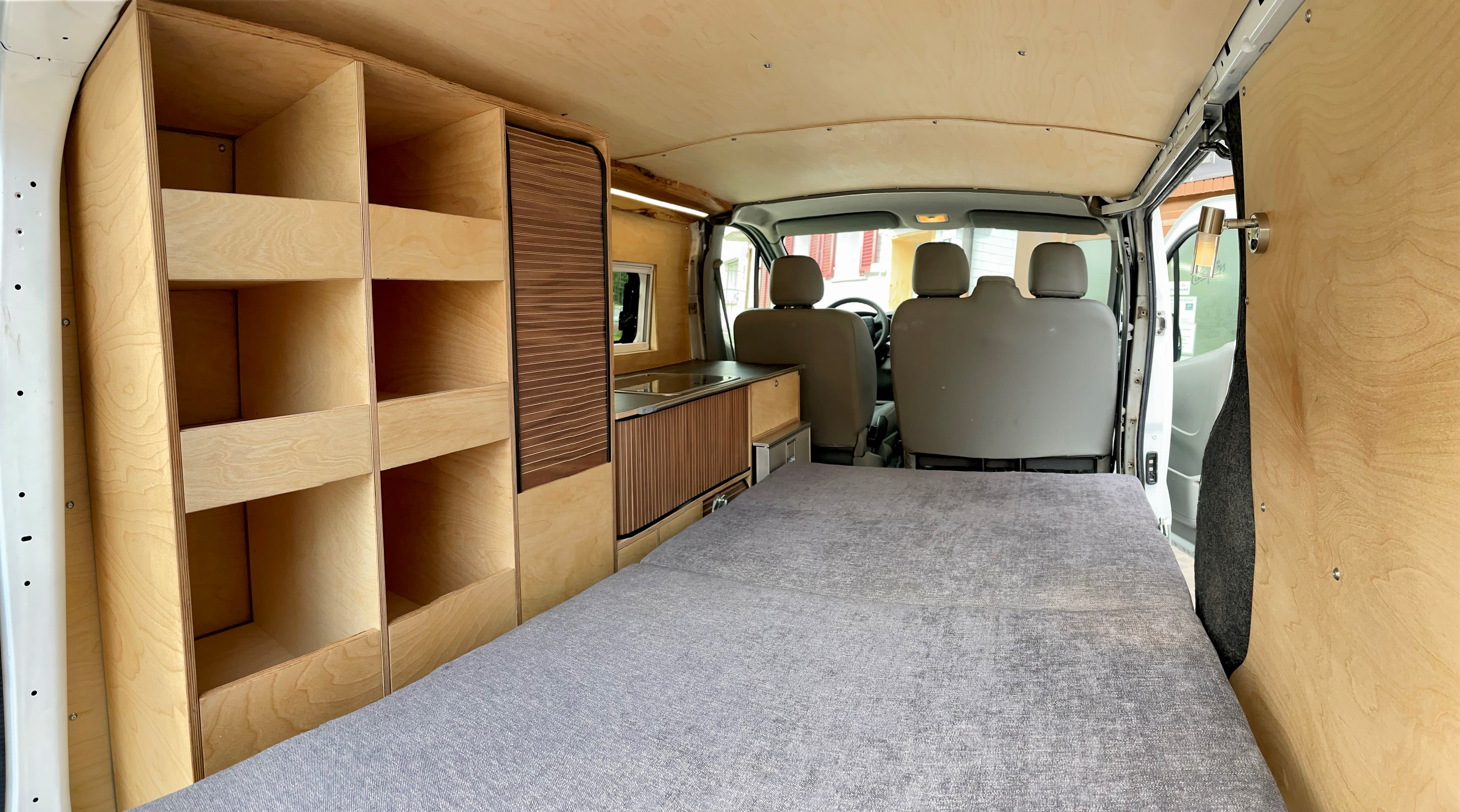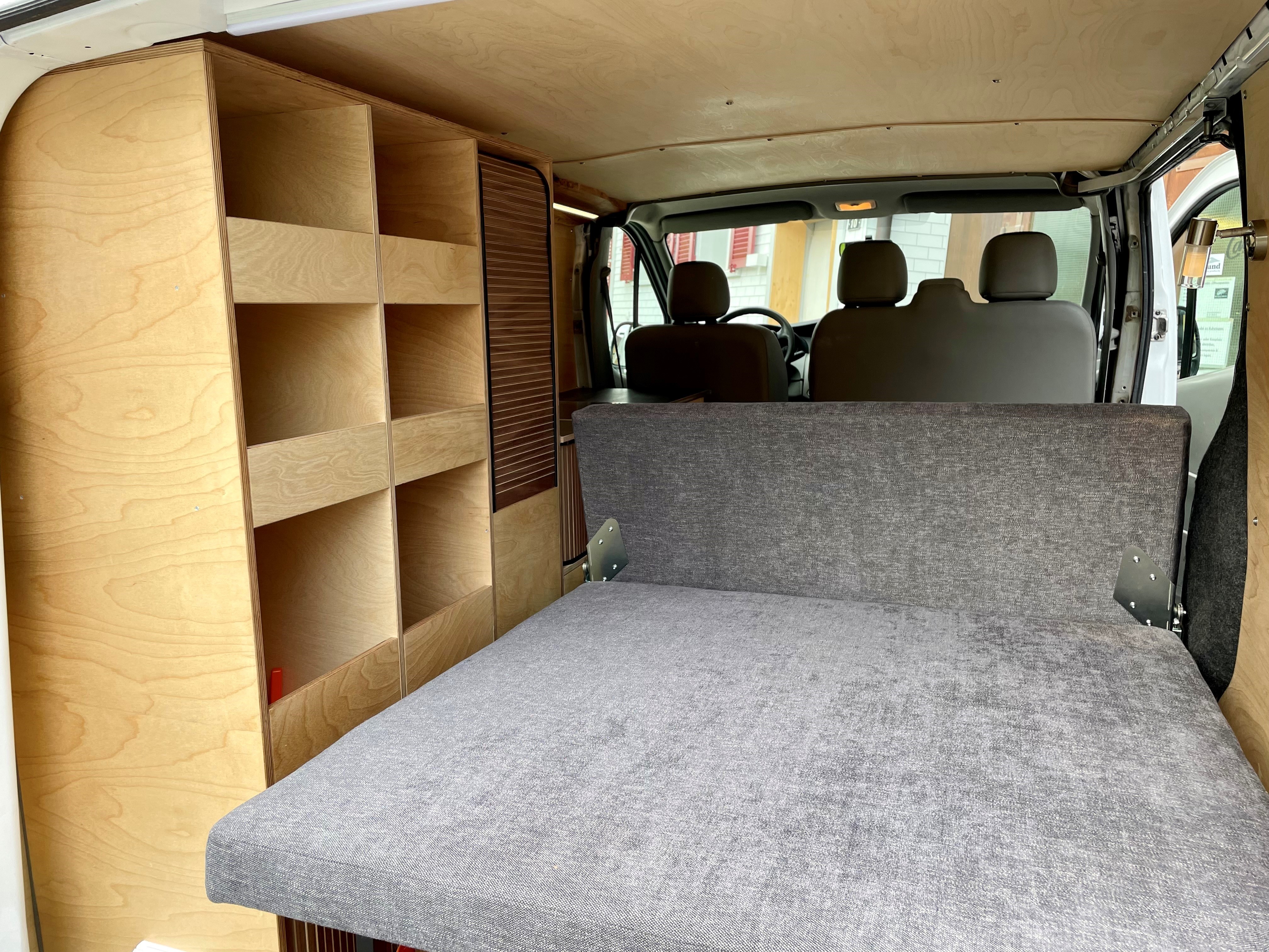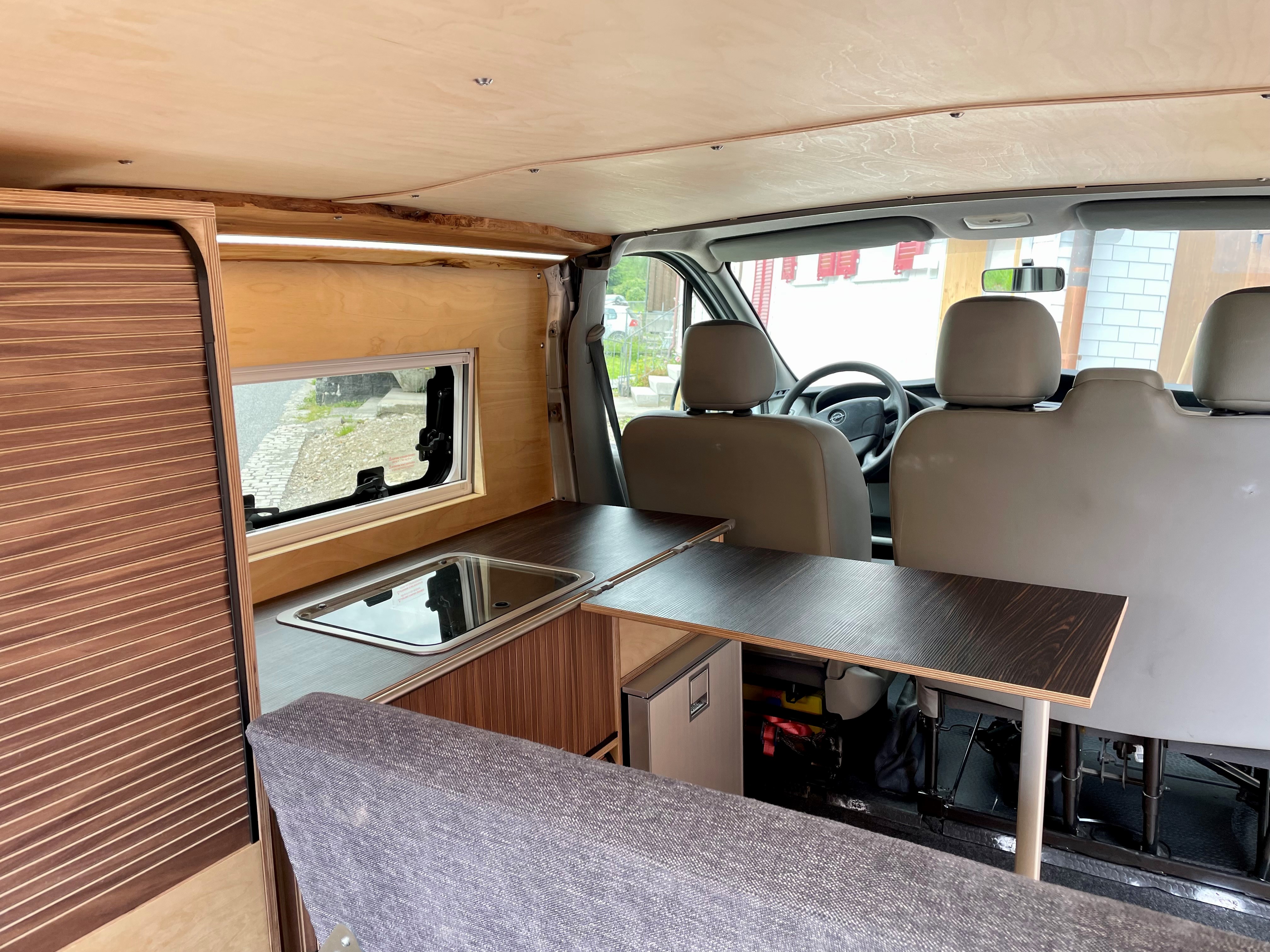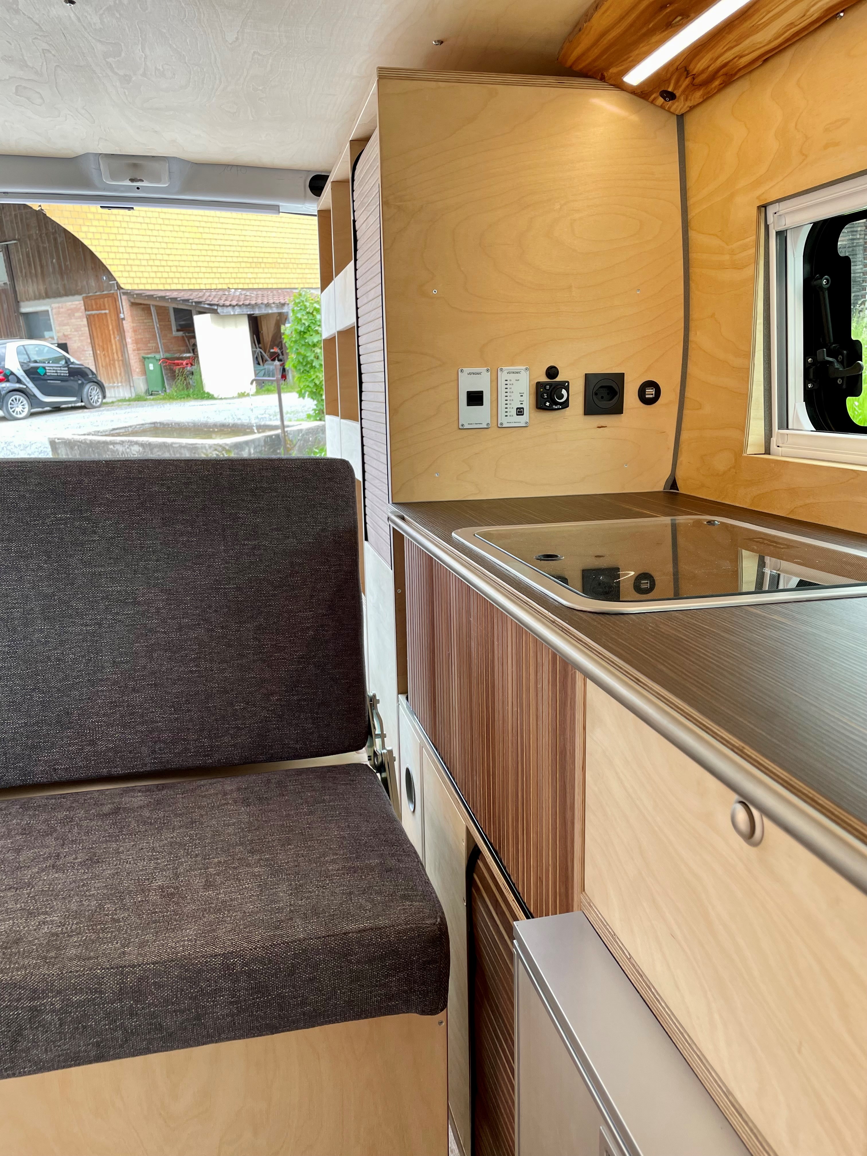 Sehr gerne haben wir diesen Traum erfüllt.Damit es richtig cozy wird haben wir teilweise mit Filz und mit viel Holz den Handwerks-Transporter-Look eliminiert.