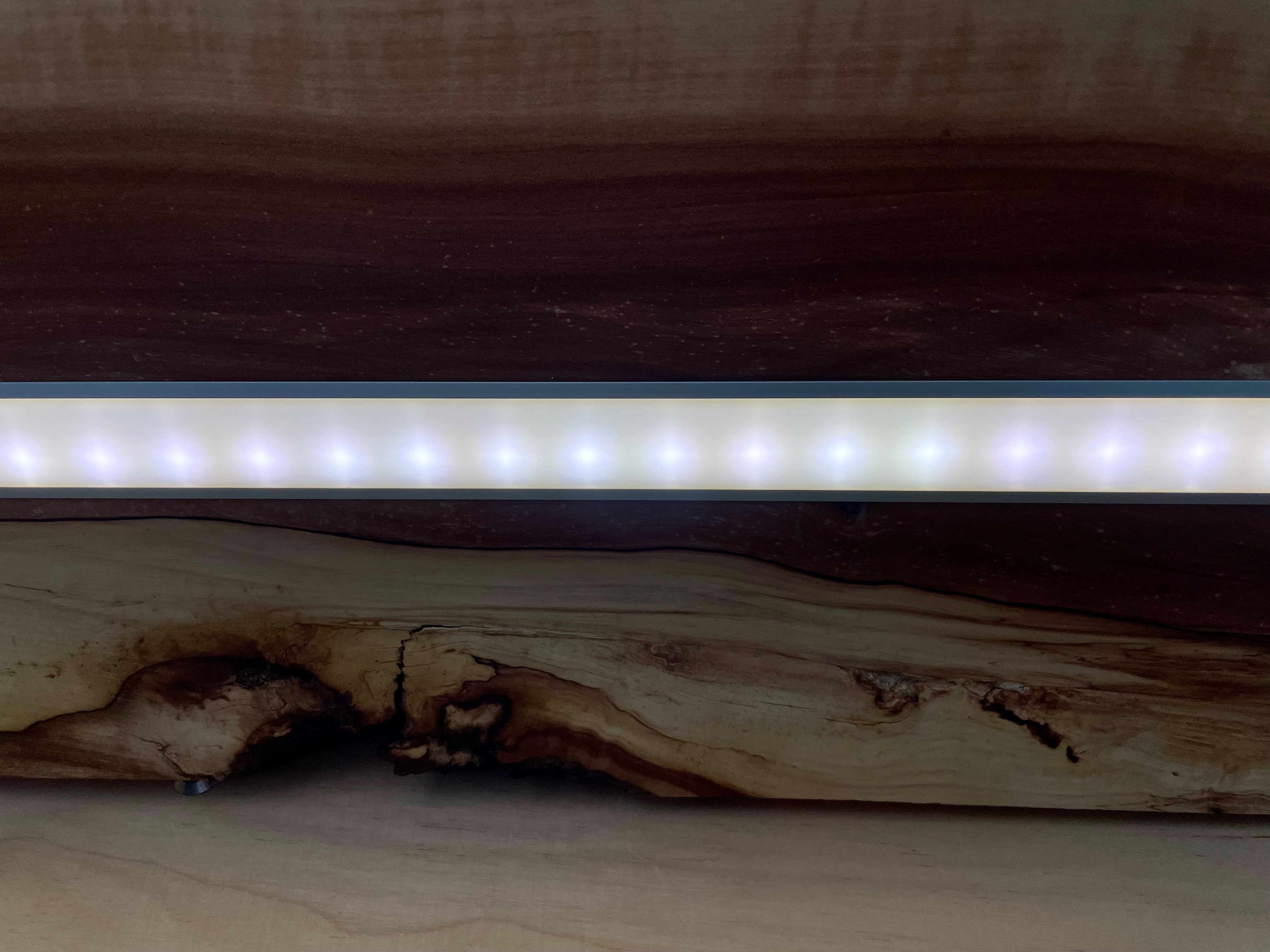 Gerne überraschen wir unsere Kunden jeweils mit einem Highlight das wir im Voraus nicht verraten. Hier ist es die kunstvolle LED Küchenleuchte die der wohligen und gemütlichen Atmosphäre den letzten Schliff verleiht.